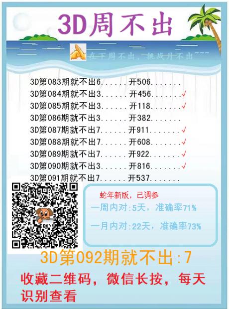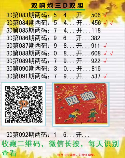 3d晚秋和值迷:本月初七 D:顺顺顺通